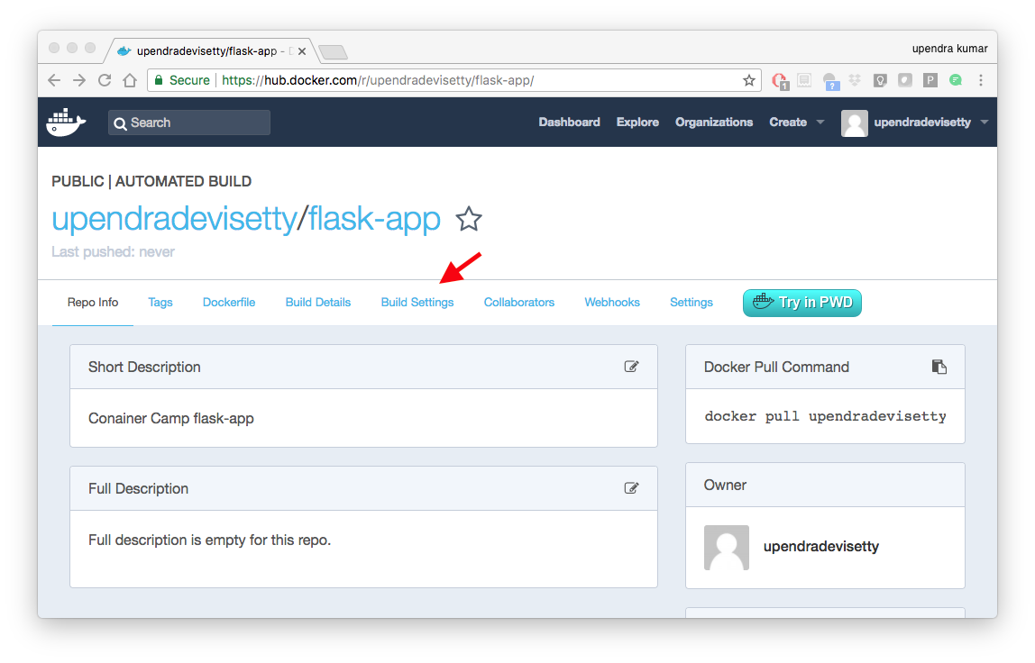 Remember to replace <DOCKERHUB_USERNAME> with your username. This username should be the same one you created when registering on Docker hub.